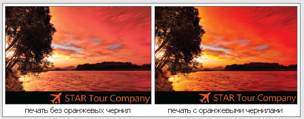 Оранжевые чернила (Or) расширяют цветовой охват и позволяют с высокой точностью воспроизвести 94,8 % цветов колориметрических атласов PANTONE. Расширенная цветовая гамма дает возможность улучшить цветопередачу, например, при печати фотографических натюрмортов со свежими овощами и фруктами, а также с высокой степенью достоверности воспроизвести сложные корпоративные цвета.