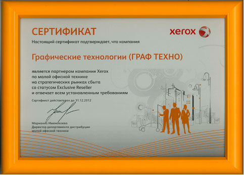 Январь 2012 Сертификат партнера по офисной технике XEROX