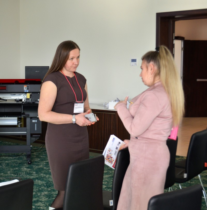 Компания GMP РУССКОМ продемонстрировала преимущества выборочного ламинирования, фольгирования и голографирования. Участники семинара смогли не только увидеть, как работают машины, но и самостоятельно протестировать оборудование в работе. Стоит отметить, что именно эта секция вызвала наибольший интерес и наибольшее количество вопросов: