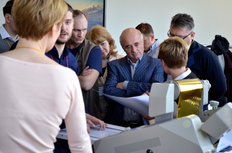 «чтобы сократить фиксированные - необходимо увеличивать количество отпечатков; чтобы сократить переменные - автоматизировать процесс настроек: настройки, приладки, калибровки, профилирования и т.д». После выступления все желающие смогли увидеть примеры печати на различных бумагах от Xerox и других производителей. Все можно было потрогать, пристально рассмотреть и по-настоящему оценить качество работы оборудования.