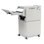 Компактный и очень простой в использовании брошюровальный модуль с ручной подачей, выполняет степлирование в трех положениях – втачку, внакидку и в угол блока, а также фальцовку. Может фальцевать до 22х листов, при этом плотность материала варьируется от 60 до 250 г/м2. Работает с форматами от А5 до А3+. Размер готового изделия от А6 до А4. Машина способна скреплять буклеты без потери скорости при работе с большими форматами, а значит, до 1800 буклетов в час могут быть изготовлены независимо от формата бумаги. Новая двухступенчатая схема сложения позволяет получать аккуратный буклет без повреждения даже деликатных материалов обложки.